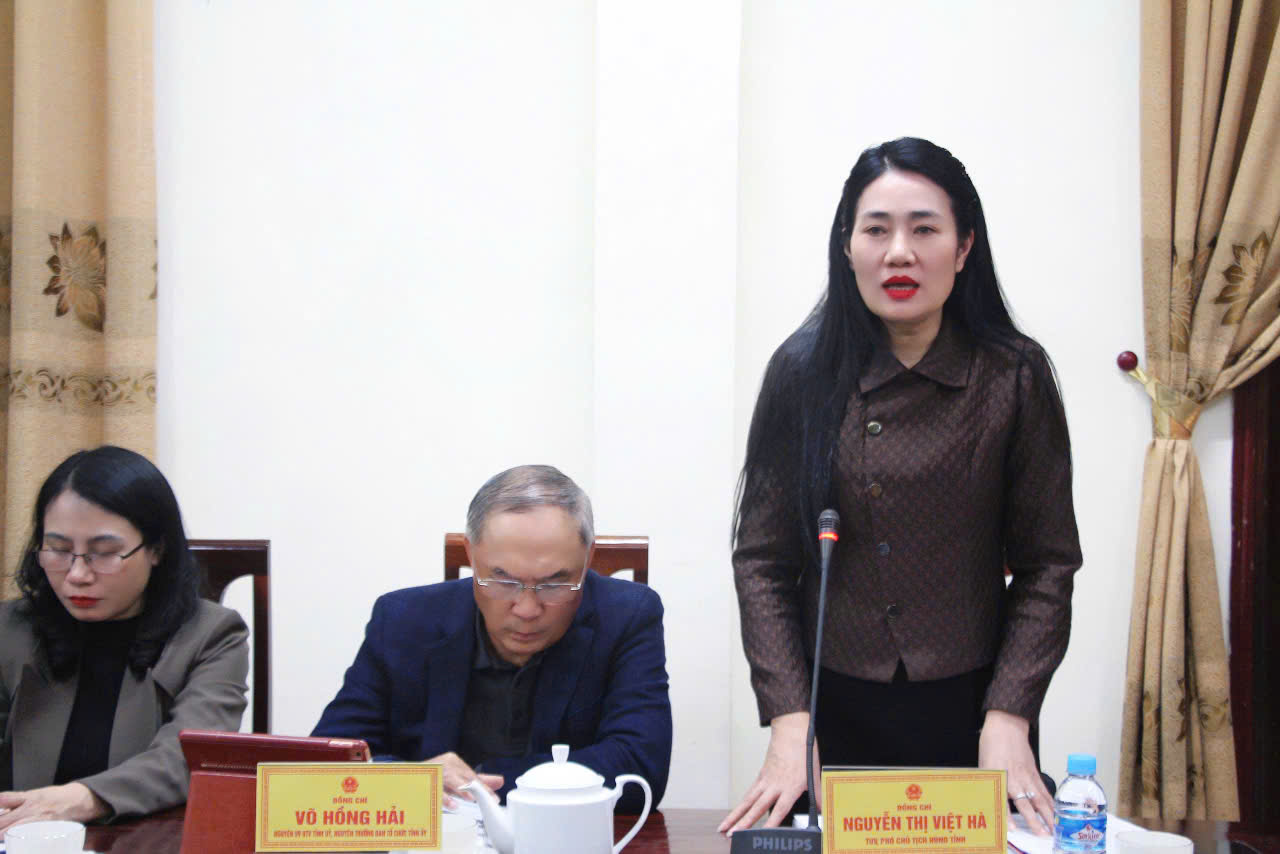 Phó Chủ tịch Hội đồng nhân dân tỉnh Nguyễn Thị Việt Hà phát biểu tại cuộc làm việc. |