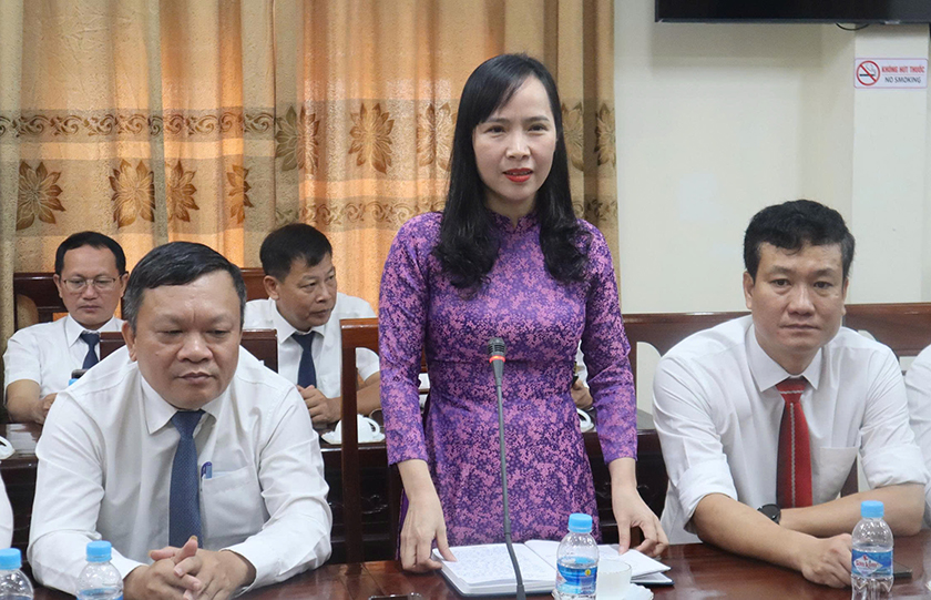 Trưởng ban Pháp chế HĐND tỉnh Nguyễn Thị Nhuần phát biểu