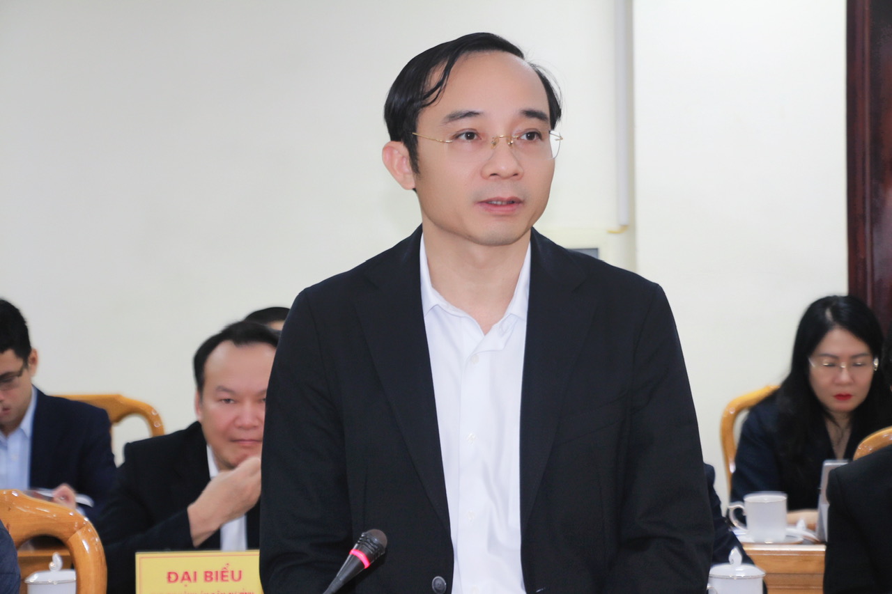 Phó Chủ tịch Thường trực HĐND tỉnh Trần Tú Anh phát biểu tại cuộc họp. |