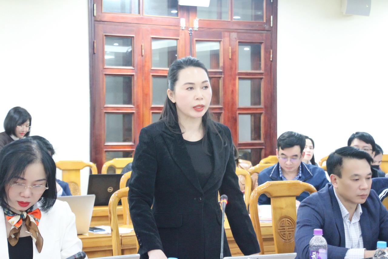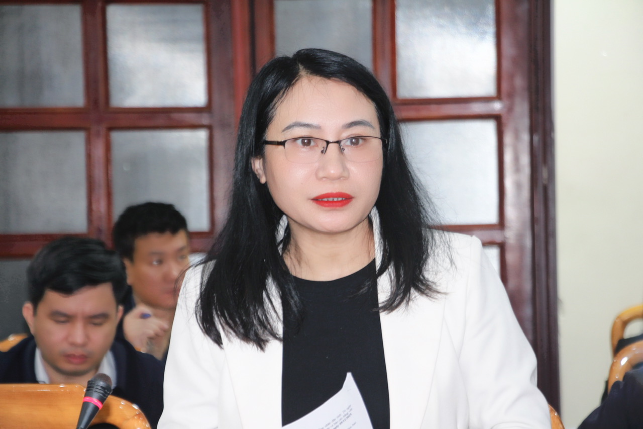 Trưởng ban Kinh tế - Ngân sách Hội đồng nhân dân tỉnh Nguyễn Thị Thúy Nga phát biểu tại cuộc họp.