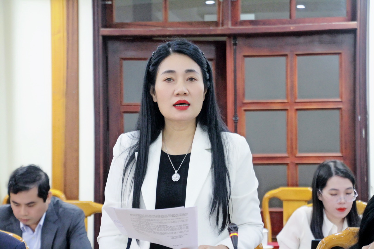 Trưởng ban Văn hóa - Xã hội Hội đồng nhân dân tỉnh Đào Thị Anh Nga phát biểu tại cuộc họp. |