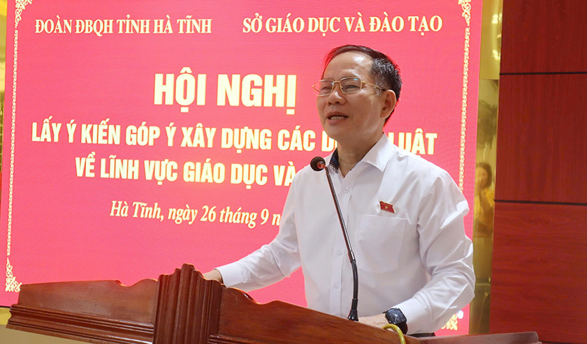 Sáng 26/9, Đoàn đại biểu Quốc hội tỉnh phối hợp với Sở Giáo dục và Đào tạo tổ chức Hội nghị lấy ý kiến góp ý xây dựng các dự án luật: Luật sửa đổi, bổ sung một số điều của Luật Giáo dục; Luật Giáo dục đại học (sửa đổi); Luật Giáo dục nghề nghiệp (sửa đổi). Chủ trì hội nghị có đồng chí Trần Đình Gia, Tỉnh ủy viên, Phó Trưởng đoàn phụ trách Đoàn ĐBQH tỉnh và đồng chí Nguyễn Ngọc Lê Nam, Phó Giám đốc Sở Giáo dục và Đào tạo