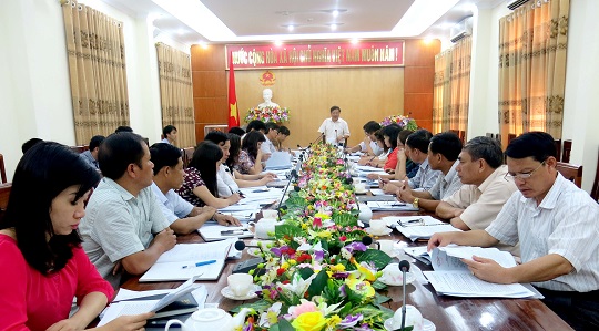 Để chuẩn bị cho kỳ họp thứ 9 HĐND sắp tới, ngày 9/7/2014, Ban Kinh tế - Ngân sách HĐND tỉnh đã họp thống nhất nội dung các báo cáo thẩm tra, tờ trình, dự thảo Nghị quyết trình kỳ họp HĐND tỉnh khóa XVI. Tham dự có đồng chí Hoàng Thị Cẩm Tú- TUV, Ủy viên Thường trực HĐND tỉnh; Lãnh đạo các ban và Văn phòng Đoàn ĐBQH và HĐND tỉnh. Đồng chí Nguyễn Trí Lạc- Trưởng Ban Kinh tế và Ngân sách HĐND tỉnh chủ trì cuộc làm việc.