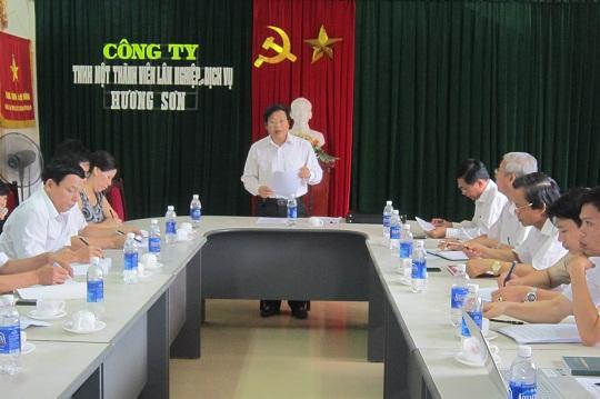 Ngày 29/8/2013, Ban Kinh tế và Ngân sách HĐND tỉnh đã làm việc với Công ty TNHH một thành viên Lâm nghiệp và Dịch vụ Hương Sơn về tình hình quản lý vốn, tài sản nhà nước tại doanh nghiệp; chấp hành chế độ chính sách, nghĩa vụ tài chính đối với ngân sách nhà nước; kết quả sản xuất, kinh doanh năm 2012; 7 tháng đầu năm 2013; nhiệm vụ, giải pháp cuối năm 2013. Tham dự làm việc có các đồng chí lãnh đạo và thành viên Ban Kinh tế Ngân sách HĐND tỉnh, Trưởng ban Pháp chế, Trưởng ban Văn hóa xã hội HĐND tỉnh, lãnh đạo Sở Nông nghiệp và Phát triển nông thôn, Văn phòng Đoàn ĐBQH&HĐND tỉnh. Đồng chí Nguyễn Trí Lạc - Trưởng ban KT- NS chủ trì buổi làm việc