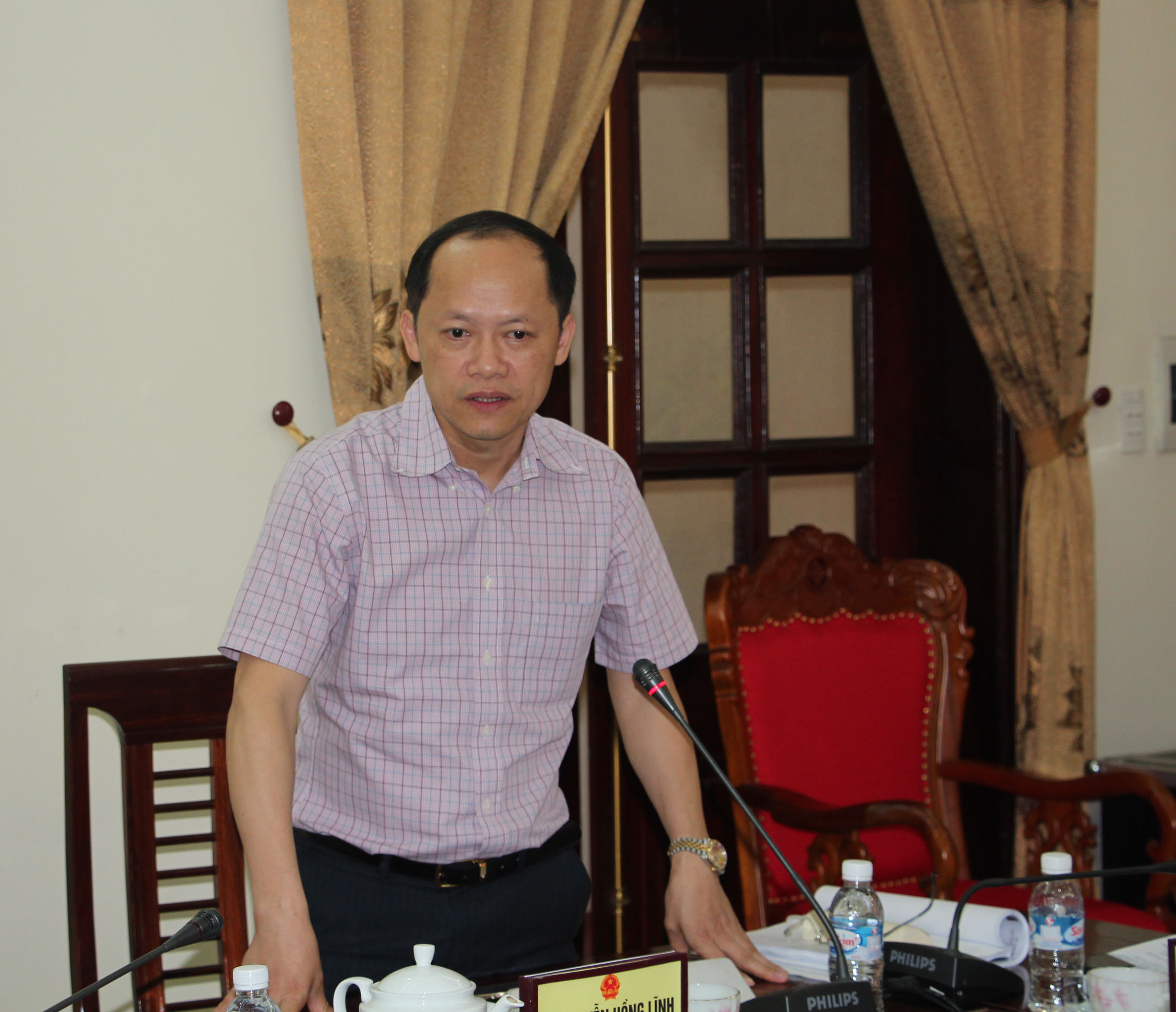 | Đồng chí Nguyễn Hồng Lĩnh, Ủy viên Ban Thường vụ Tỉnh ủy, bí thư Thành ủy Thành phố Hà Tĩnh phát biểu tại cuộc làm việc |