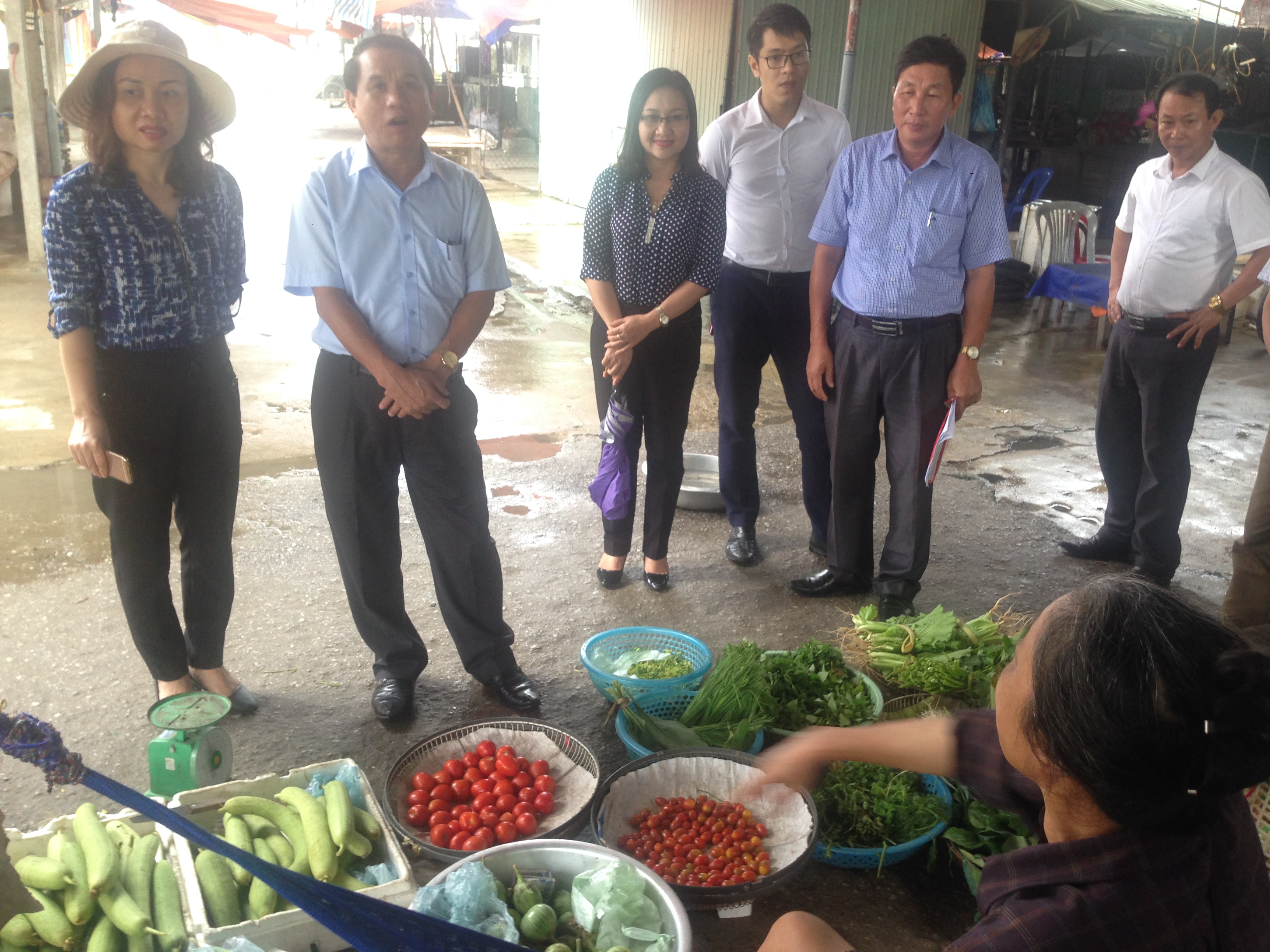 | Đoàn khảo sát tại một số chợ trên địa bàn huyện |