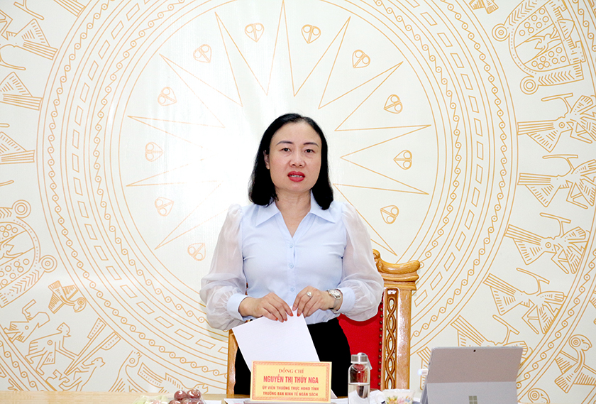 Trưởng ban Kinh tế - Ngân sách HĐND tỉnh Nguyễn Thị Thúy Nga phát biểu tại cuộc làm việc.