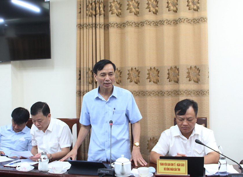 | Thành viên Ban Kinh tế - ngân sách HĐND tỉnh Trần Quang Tuấn: Trong danh mục hầu hết các dự án có sử dụng ngân sách địa phương, vì vậy cần làm rõ sử dụng nguồn từ ngân sách cấp nào |