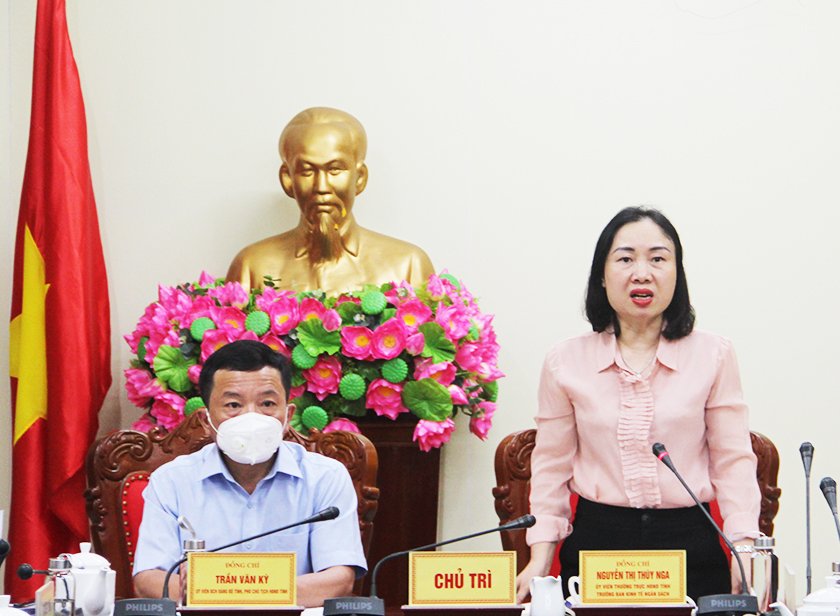 Kết luận cuộc làm việc, Trưởng Ban Kinh tế - Ngân sách HĐND tỉnh Nguyễn Thị Thúy Nga phát biểu tiếp thu ý kiến của các đại biểu để chỉ đạo chỉnh sửa, bổ sung, hoàn thiện báo cáo thẩm tra của Ban đảm bảo chất lượng trình HĐND tỉnh tại Kỳ họp thứ 6 sắp tới