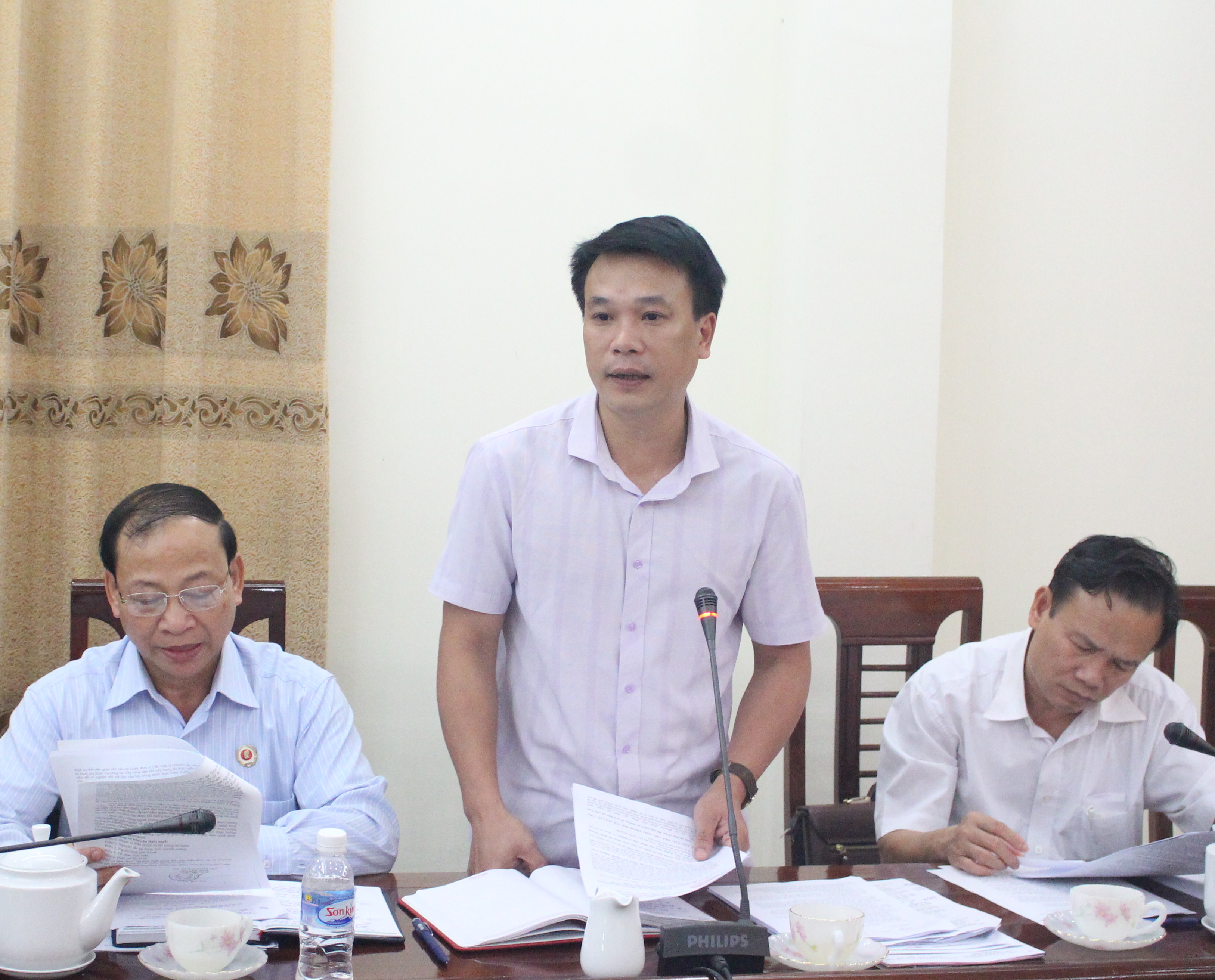 | Trưởng ban Pháp chế HĐND tỉnh Nguyễn Trọng Nhiệu phát biểu |