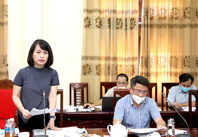 Trưởng ban Pháp chế HĐND tỉnh Nguyễn Thị Nhuần phát biểu tại cuộc làm việc.