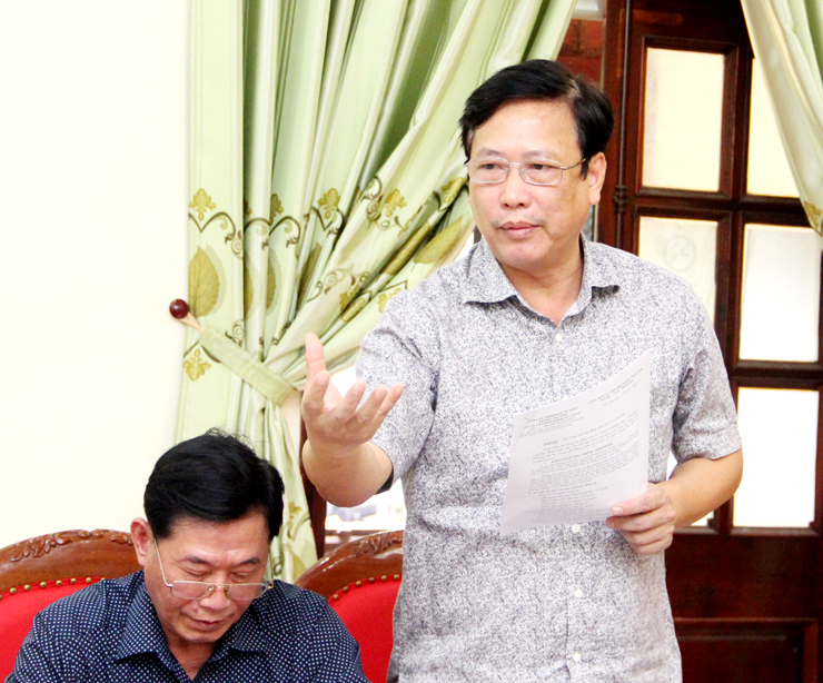 Trưởng ban Pháp chế HĐND tỉnh Nguyễn Huy Hùng phát biểu tại cuộc làm việc