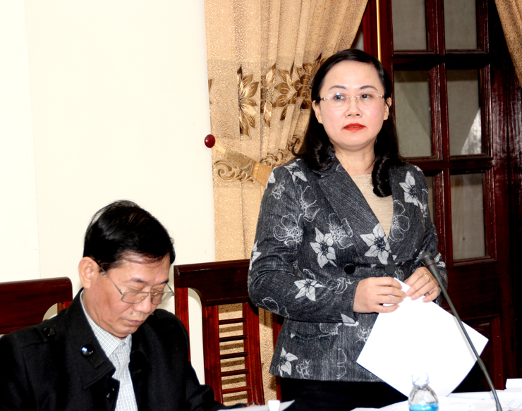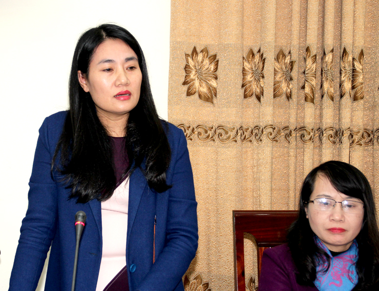 Phó Giám đốc Sở Nội vụ Phan Thị Tố Hoa trình bày các tờ trình, dự thảo nghị quyết trình kỳ họp thứ 12 HĐND tỉnh khóa XVII