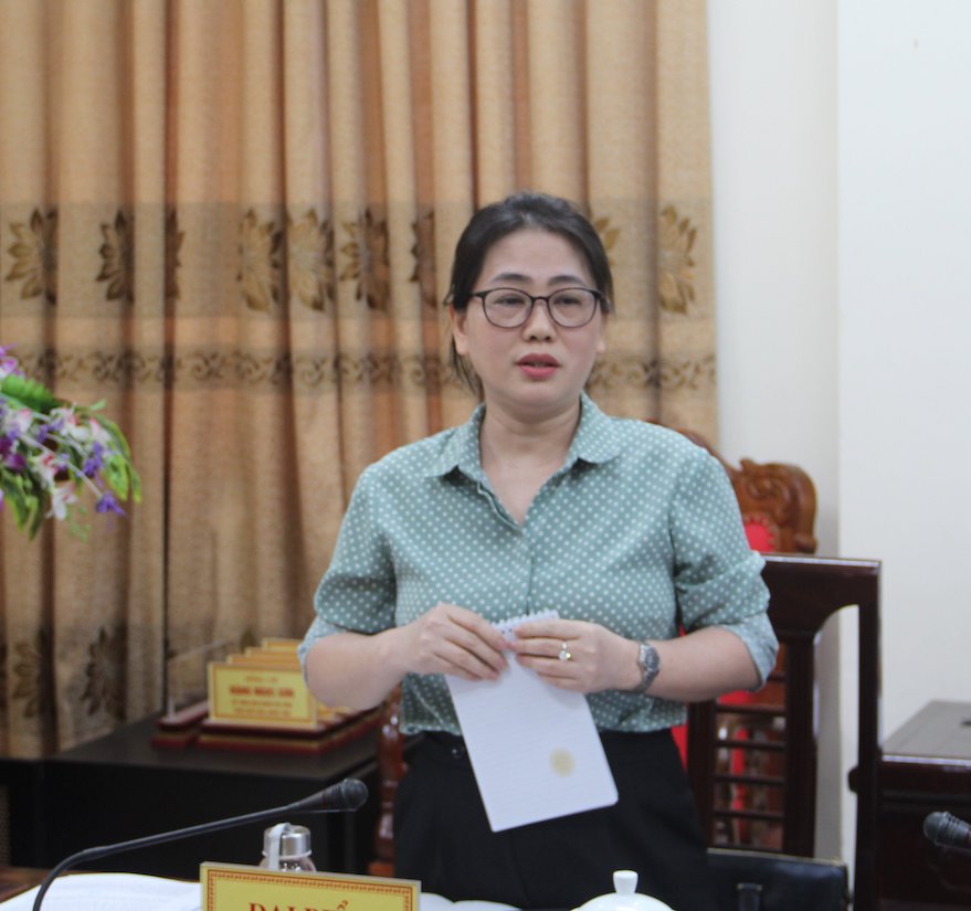 | Trưởng đoàn giám sát, Trưởng Ban Pháp chế HĐND tỉnh Nguyễn Thị Nhuần phất biểu kết luận tại cuộc làm việc |