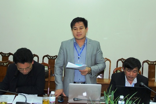 | Trưởng phòng giáo dục Nguyễn Hữu Sum báo cáo tại buổi làm việc |