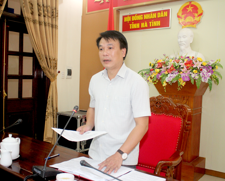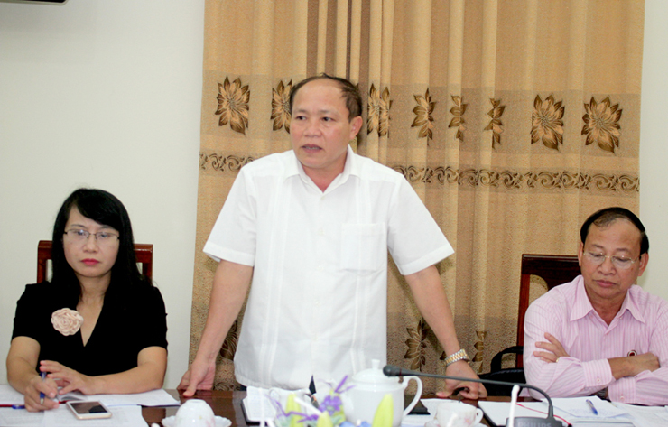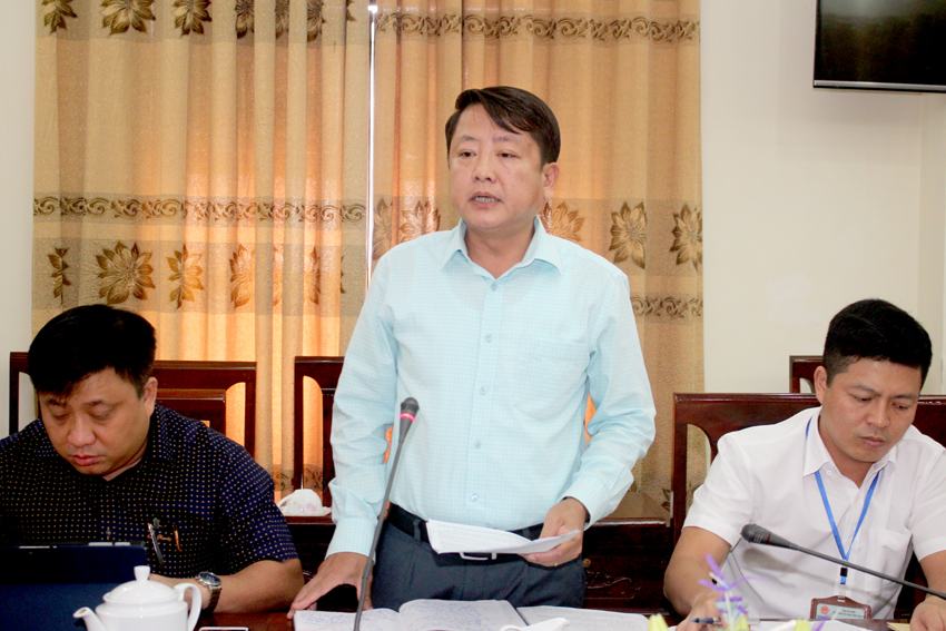 Trưởng ban Pháp chế HĐND tỉnh Nguyễn Huy Hùng phát biểu tại cuộc làm việc