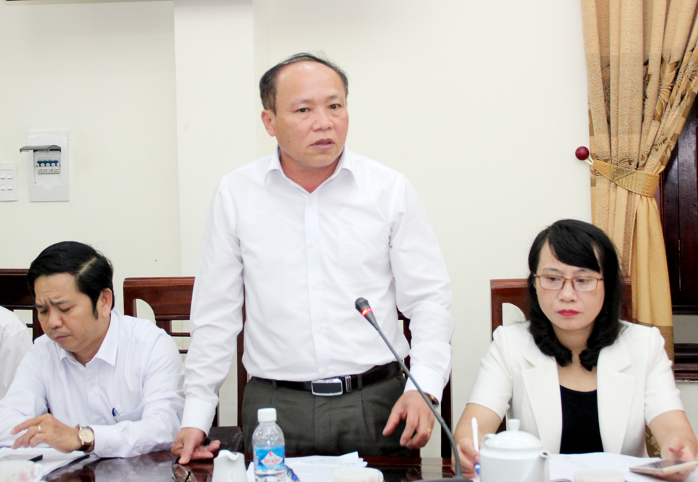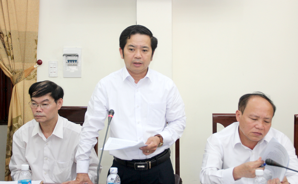 Trưởng ban Pháp chế HĐND tỉnh Nguyễn Huy Hùng phát biểu tại cuộc làm việc