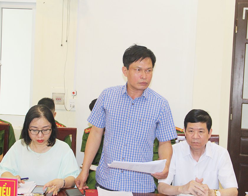 | Phó Trưởng Công an huyện Cẩm Xuyên Lương Sỹ Đằng trình bày và giải trình một số nội dung về việc chấp hành pháp luật trong việc thi hành án treo, cải tạo không giam giữ tại địa bàn |