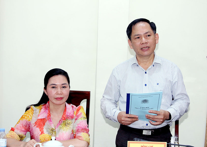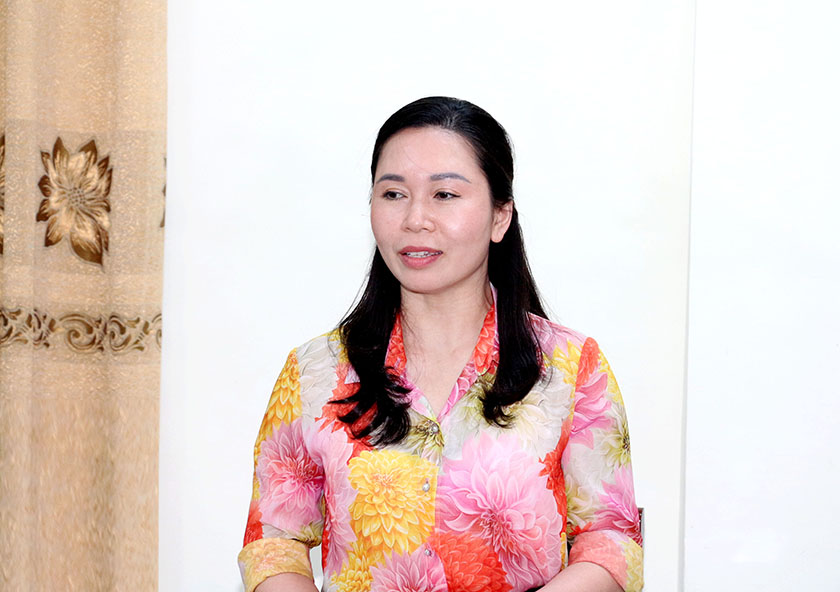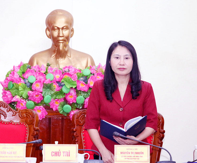 | Trưởng ban Pháp chế HĐND tỉnh Nguyễn Thị Nhuần phát biểu tại cuộc làm việc |