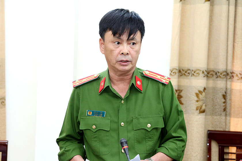 Trưởng phòng Cảnh sát phòng cháy, chữa cháy và cứu nạn, cứu hộ Võ Đức Long báo cáo tại cuộc làm việc . |