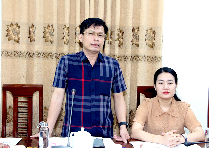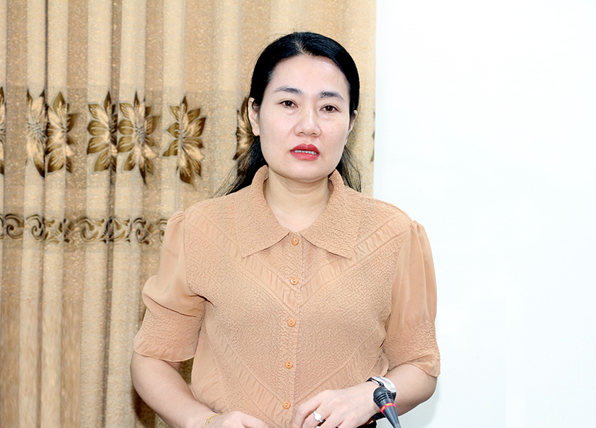 Trưởng ban Pháp chế HĐND tỉnh Nguyễn Thị Nhuần phát biểu tại cuộc làm việc.
