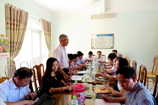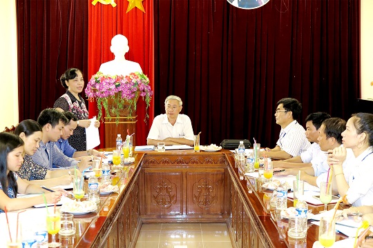 Sáng 03/4, Ban Văn hóa - Xã hội Hội đồng nhân dân tỉnh tiến hành làm việc với Sở GD&ĐT để nghe báo cáo công tác chuẩn bị cho kỳ thi THPT quốc gia; công tác nước sạch và vệ sinh môi trường trong các cơ sở giáo dục trên địa bàn và kết quả sơ bộ việc tuyển dụng giáo viên mầm non. Đồng chí Đoàn Đình Anh – Trưởng ban chủ trì buổi làm việc.
