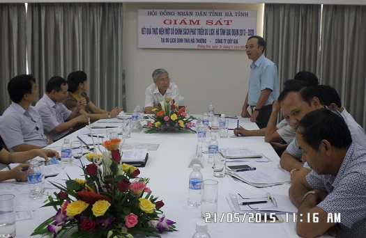 Ngày 27/5/2015, Đoàn giám sát HĐND tỉnh, do đồng chí Đoàn Đình Anh - Trưởng ban VH - XH, Trưởng Đoàn giám sát chủ trì đã họp để thống nhất báo cáo giám sát chuyên đề về “Kết quả thực hiện một số chính sách phát triển du lịch Hà Tĩnh giai đoạn 2013 - 2020”. Tham dự có các đồng chí: Đặng Quốc Vinh - UVBTV Tỉnh ủy, Trưởng ban Tuyên giáo Tỉnh ủy, Nguyễn Thị Nữ Y - PCT HĐND tỉnh, Hoàng Thị Cẩm Tú - UVTT HĐND tỉnh, lãnh đạo các ban HĐND tỉnh, lãnh đạo Văn phòng Đoàn ĐBQH&HĐND tỉnh và toàn bộ thành viên đoàn giám sát