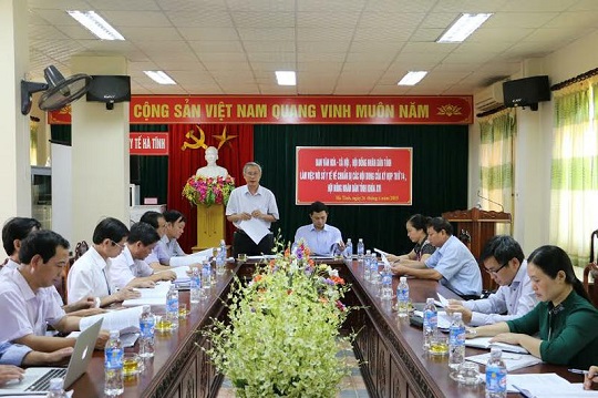 Để chuẩn bị cho kỳ họp thứ 14 của Hội đồng nhân dân tỉnh khóa XVI, chiều 26/6, Ban Văn hóa - Xã hội Hội đồng nhân tỉnh đã có buổi làm việc với Sở Y tế để nghe báo cáo kết quả hoạt động 6 tháng đầu năm, nhiệm vụ 6 tháng cuối năm 2015 và dự thảo nghị quyết sửa đổi, thay thế Nghị quyết 21/2011/NQ-HĐND của Hội đồng nhân dân tỉnh. Tham dự buổi làm việc có đồng chí Hoàng Thị Cẩm Tú, TUV, Ủy viên Thường trực. Đồng chí Đoàn Đình Anh - Trưởng Ban Văn hóa - Xã hội, Hội đồng nhân dân tỉnh và Bác sĩ Lê Ngọc Châu - Giám đốc Sở Y tế đồng chủ trì buổi làm việc.
