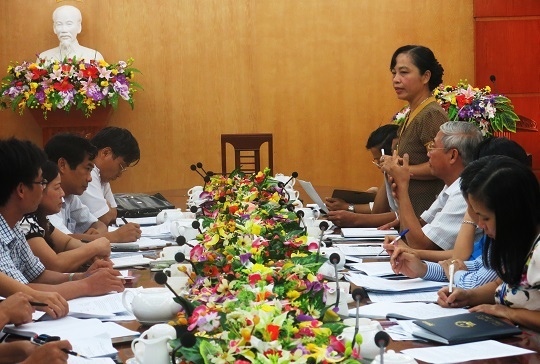 Sáng ngày 15/8/2014, Ban Văn hóa - Xã hội HĐND tỉnh đã làm việc với Ban Thi đua - Khen thưởng tỉnh và Sở Lao động - Thương binh & Xã hội để nghe báo cáo kết quả thực hiện việc xét tặng, truy tặng danh hiệu vinh dự Nhà nước “Bà mẹ Việt Nam anh hùng”. Tham dự buổi làm việc có đồng chí Hoàng Thị Cẩm Tú - TUV, Ủy viên Thường trực HĐND tỉnh, Lãnh đạo các ban HĐND. Đồng chí Đoàn Đình Anh, Trưởng ban VH-XH HĐND tỉnh chủ trì buổi làm việc