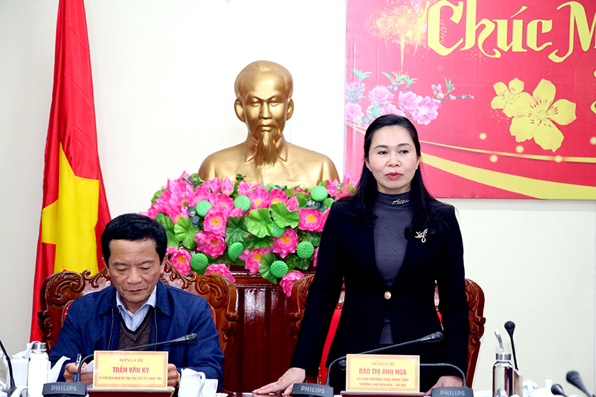 Chiều 11/01/20223, Trưởng ban Văn hóa - Xã hội Hội đồng nhân dân (HĐND) tỉnh Đào Thị Anh Nga đã chủ trì họp tổng kết hoạt động năm 2022, triển khai kế hoạch năm 2023. Tham dự có Phó Chủ tịch HĐND tỉnh Trần Văn Kỳ; các Ủy viên Ban Văn hóa - Xã hội HĐND tỉnh; lãnh đạo Văn phòng Đoàn ĐBQH và HĐND tỉnh.