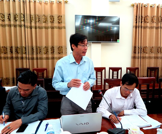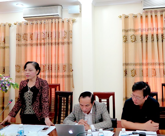 | ...và đồng chí Hoàng Thị Cẩm Tú - Ủy viên Thường trực HĐND tỉnh phát biểu tại cuộc làm việc |