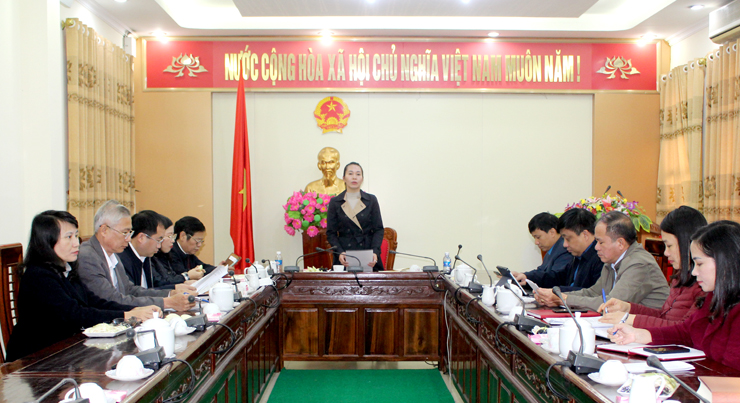 Phó Trưởng ban Phụ trách Ban Văn hóa - Xã hội HĐND tỉnh Đào Thị Anh Nga phát biểu tại cuộc làm việc