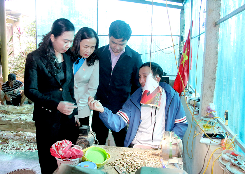 Đoàn trao đổi với công nhân tại cơ sở sản xuất kinh doanh Trầm Hương Thọ Nga