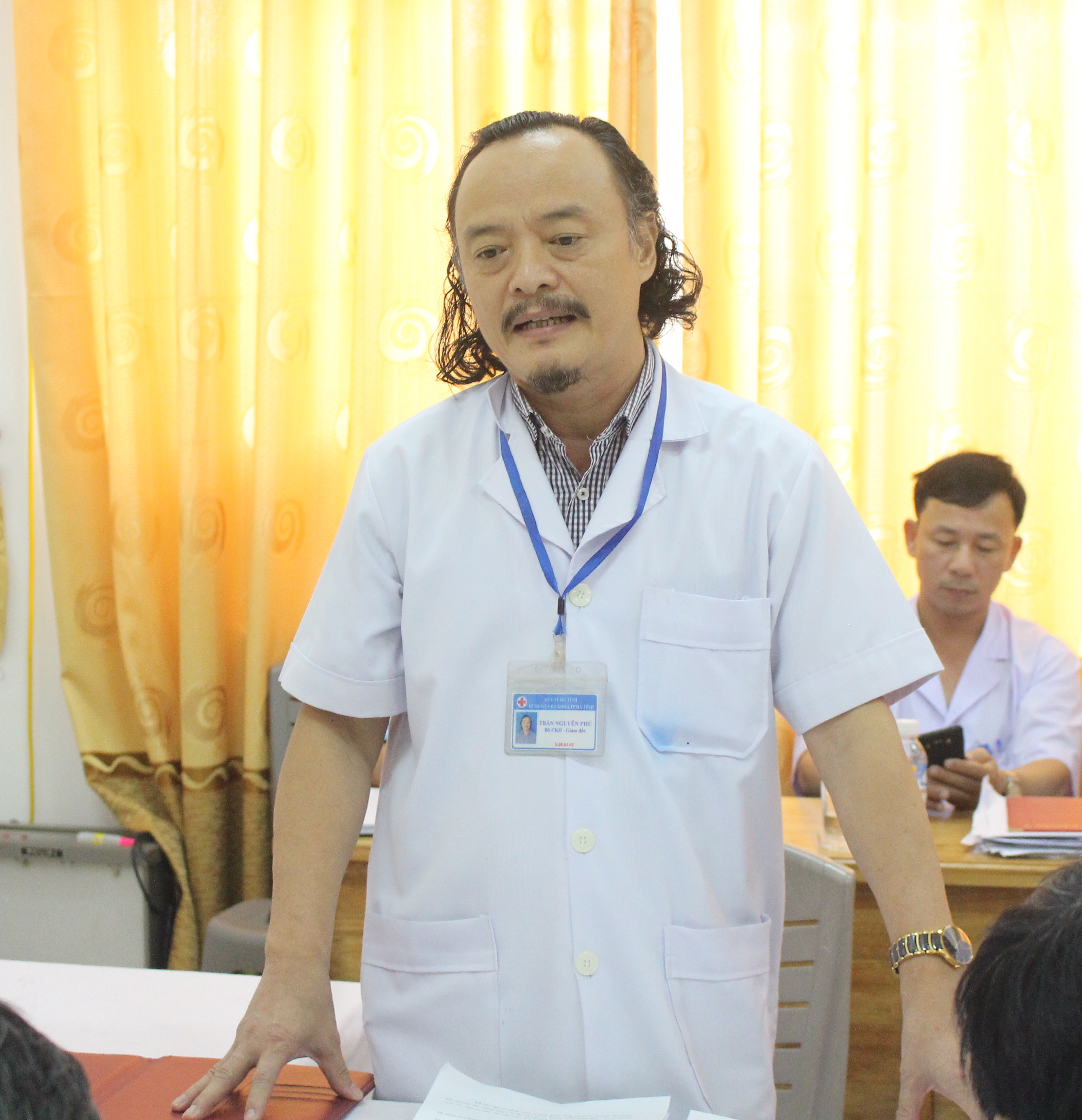 | Giám đốc Bệnh viện Đa khoa thành phố Trần Nguyên Phú báo cáo |