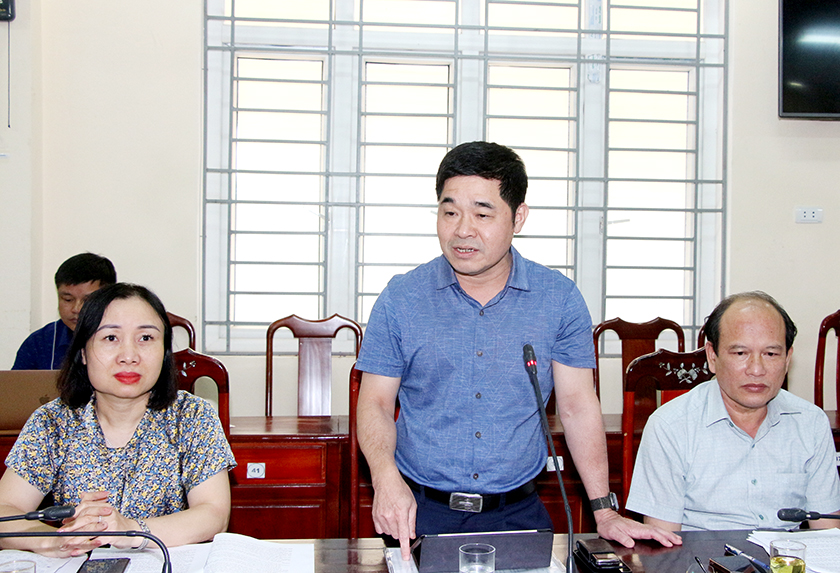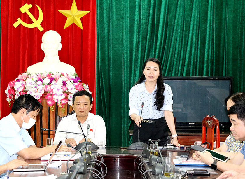 Trưởng ban Văn hóa - Xã hội HĐND tỉnh Đào Thị Anh Nga phát biểu tại cuộc làm việc