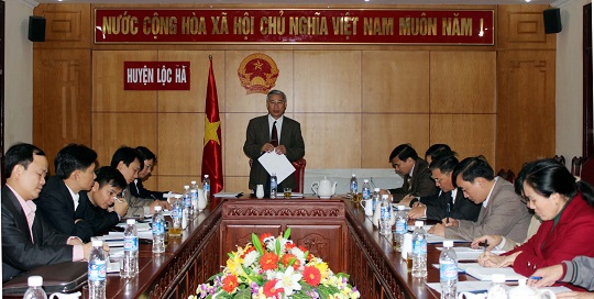 | Đồng chí Đoàn Đình Anh - Trưởng Ban Văn hóa - Xã hội HĐND tỉnh phát biểu tại cuộc làm việc với UBND huyện Lộc Hà |
