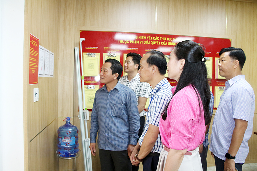 Đoàn khảo sát tại phòng giao dịch một cửa phường Thạch Quý...