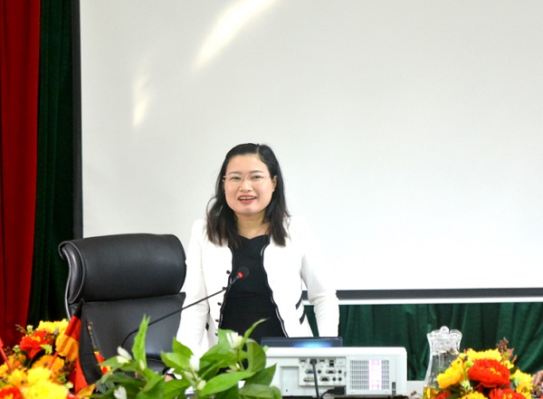 TS. Cao Thành Lê - Hiệu trưởng Trường Cao đẳng Kỹ thuật Việt Đức Hà Tĩnh báo cáo kết quả việc thực hiện các chế độ, chính sách trên lĩnh vực giáo dục nghề nghiệp giai đoạn 2016-2018 của đơn vị |