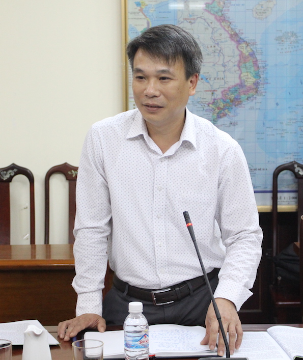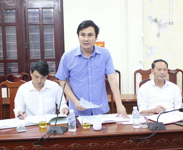 | Trưởng phòng Nội vụ huyện Lộc Hà Nguyễn Việt Cường báo cáo |