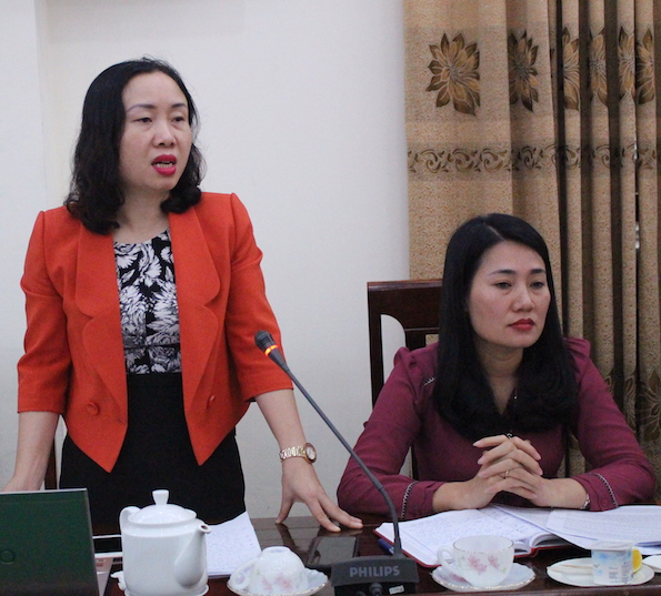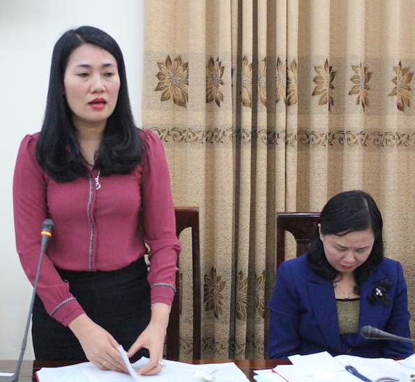 | Phó giám đốc Sở Nội vụ Phan Thị Tố Hoa báo cáo |