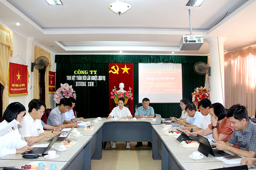 Trước đó, Đoàn giám sát đã khảo sát thực tế cơ sở vật chất, công tác bảo vệ rừng, đời sống người lao động tại Trạm bảo vệ rừng Ngã Đôi (thuộc Công ty TNHH MTV Lâm nghiệp & Dịch vụ Hương Sơn). Tại đây, Đoàn đã thăm hỏi, động viên, chia sẻ và mong người lao động tiếp tục nỗ lực, cố gắng, làm tốt công tác bảo vệ rừng.