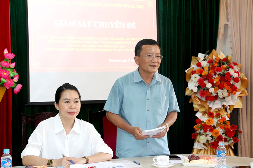Phát biểu tại cuộc làm việc, Phó Chủ tịch Hội đồng nhân dân tỉnh Trần Văn Kỳ và Trưởng đoàn Giám sát Đào Thị Anh Nga đánh giá cao những kết quả đạt được của đơn vị trong việc thực hiện chế độ, chính sách cho người lao động; ghi nhận, chia sẻ với những khó khăn trong quá trình sản xuất, kinh doanh, phát triển của đơn vị. Đồng thời, đề nghị đơn vị tiếp tục thực hiện tốt các chức năng, nhiệm vụ được giao; chủ động, sáng tạo, linh hoạt trong triển khai thực hiện các phương án sản xuất kinh doanh nhằm nâng cao thu nhập, đời sống cho người lao động. Đối với các kiến nghị của đơn vị, đoàn sẽ tổng hợp, xem xét và trình cấp có thẩm quyền xem xét, giải quyết kịp thời.