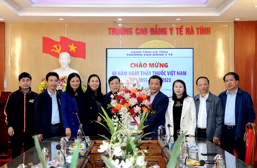 …và tặng hoa, chúc mừng Trường Cao đẳng Y tế Hà Tĩnh.