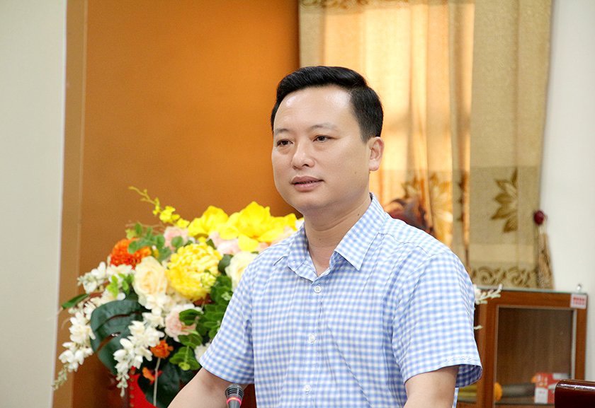 Giám đốc Sở Thông tin và Truyền thông Đậu Tùng Lâm báo cáo tại cuộc họp