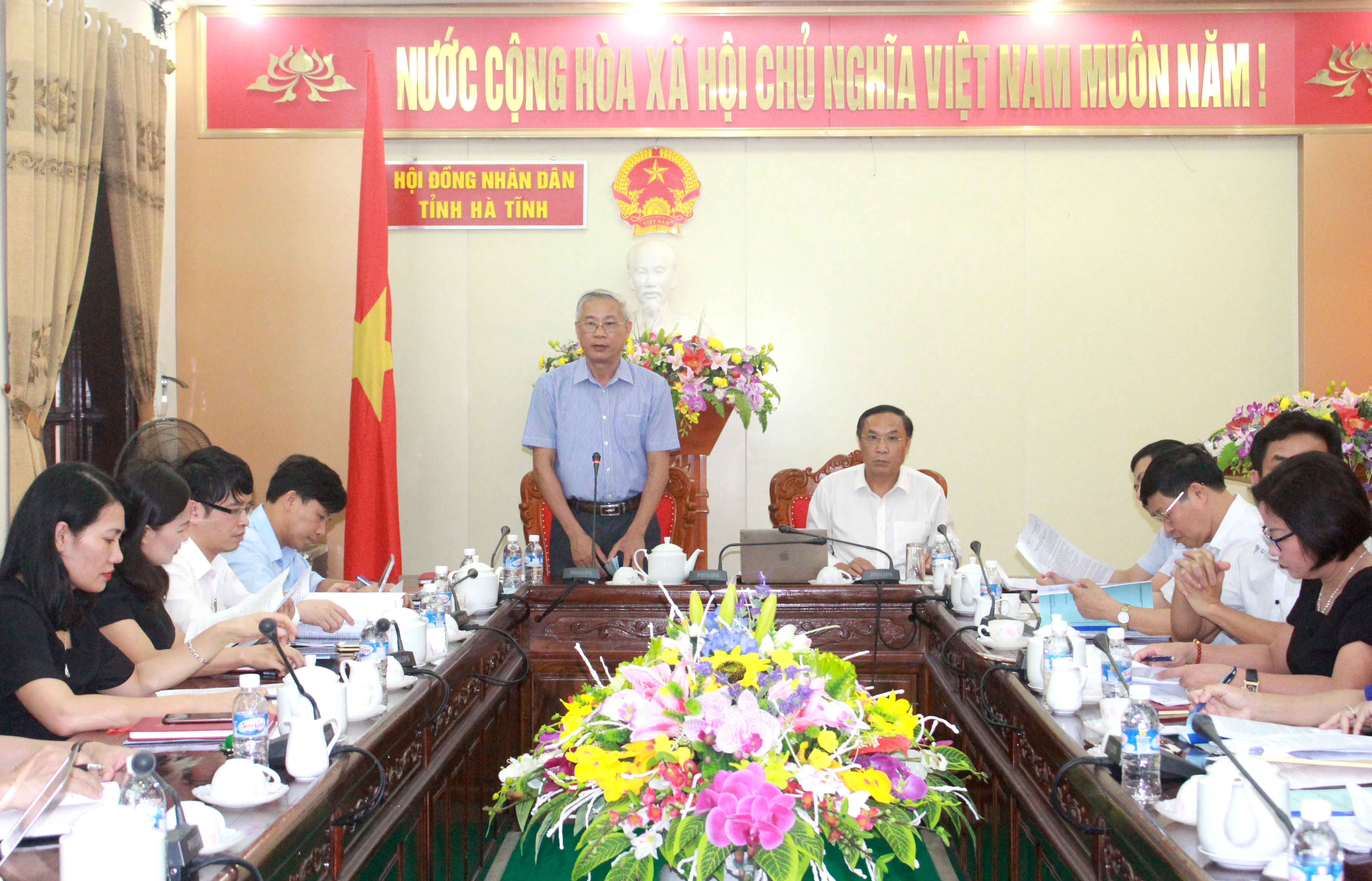 Tại cuộc làm việc, các đại biểu cũng đã nghe lãnh đạo Sở Y tế báo cáo tờ trình, dự thảo nghị quyết về thực hiện Chương trình mục tiêu Y tế - Dân số trên địa bàn Hà Tĩnh giai đoạn 2018-2020 và Đề án "Nâng cao hiệu lực, hiệu quả hoạt động của ngành y tế Hà Tĩnh, sắp xếp tinh giản bộ máy, biên chế đến năm 2025 và các năm tiếp theo".