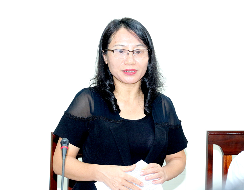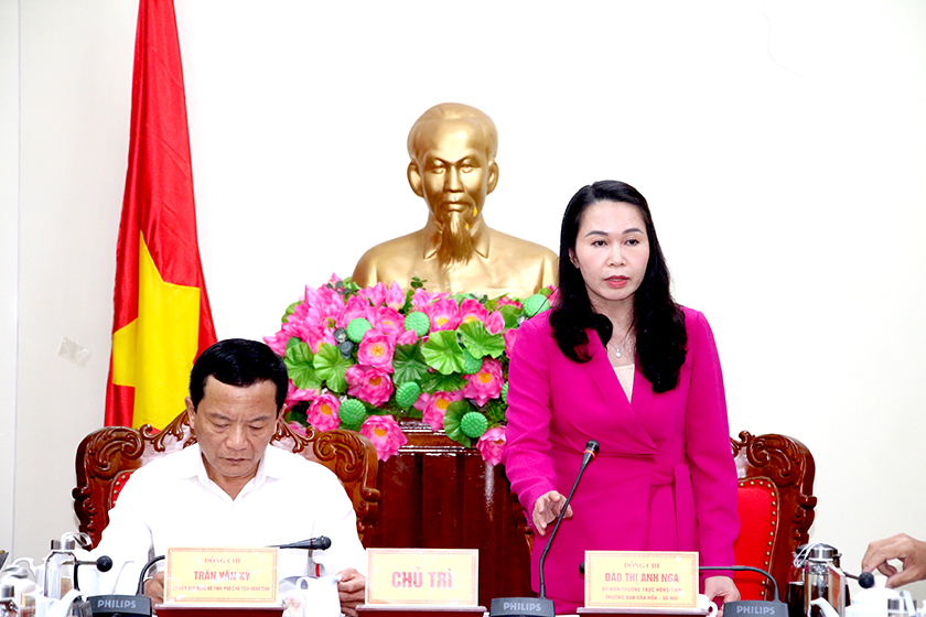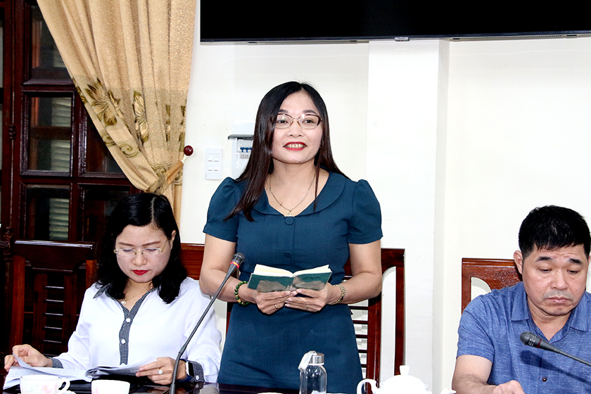 Trưởng ban Văn hóa - Xã hội HĐND tỉnh Đào Thị Anh Nga phát biểu tại cuộc làm việc.