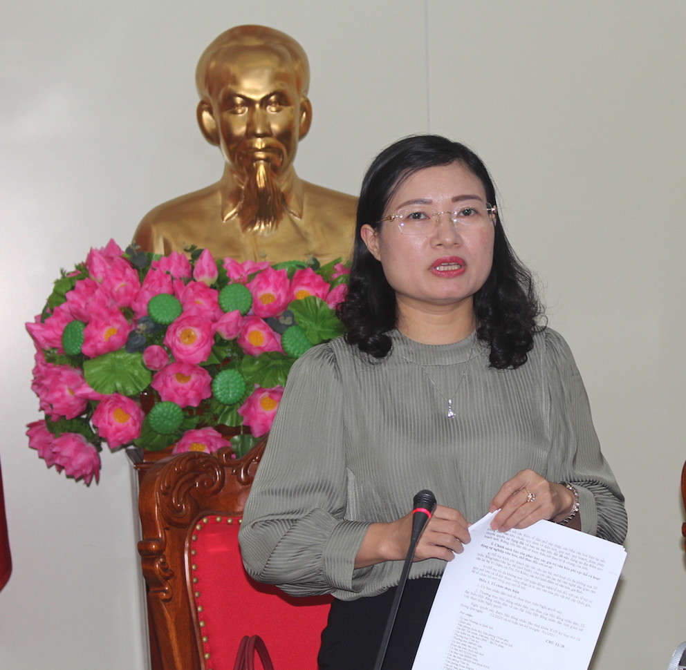 Phát biểu tại buổi làm việc, Trưởng ban Văn hóa - Xã hội HĐND tỉnh, Bí thư Huyện ủy Thạch Hà Nguyễn Thị Nguyệt cho rằng: Đối với Nghị quyết về xây dựng và nâng cao hiệu quả hoạt động của hệ thống thiết chế văn hóa, thể thao, cơ sở, giai đoạn 2021 – 2025 và những năm tiếp theo đề nghị soạn lại thể thức văn bản, thống nhất giữa tờ trình và dự thảo nghị quyết.