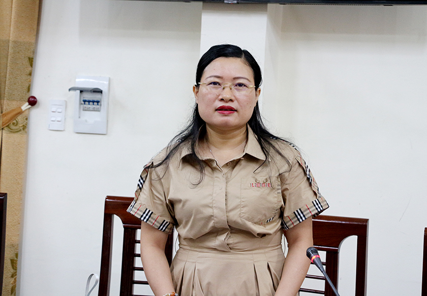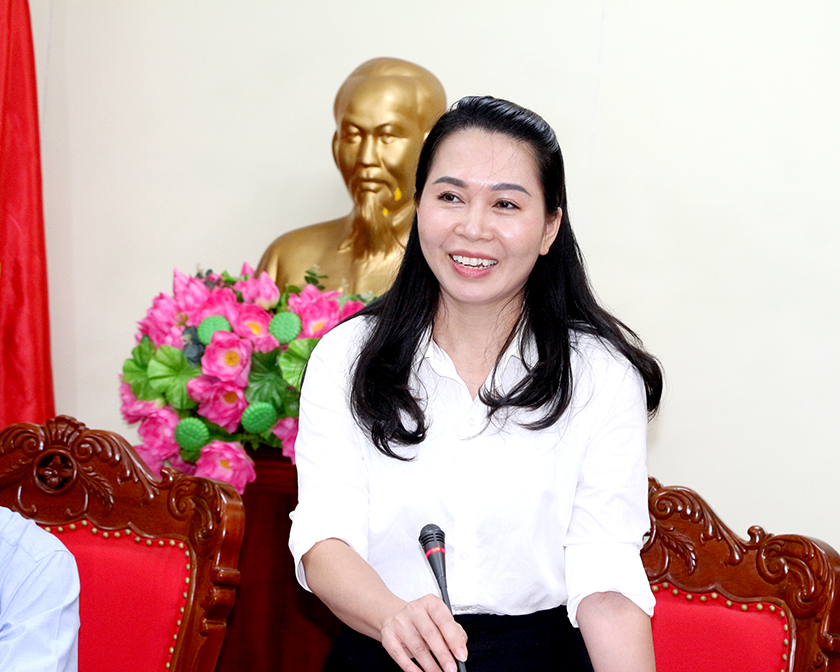 Trưởng ban Văn hóa - Xã hội HĐND tỉnh Đào Thị Anh Nga phát biểu tại cuộc làm việc.