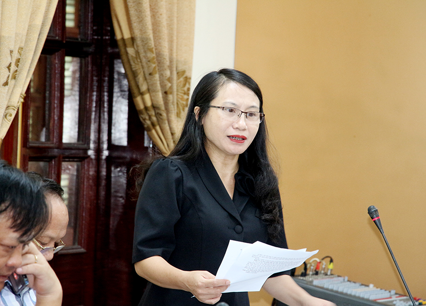 Trưởng ban Pháp chế HĐND tỉnh Nguyễn Thị Nhuần phát biểu