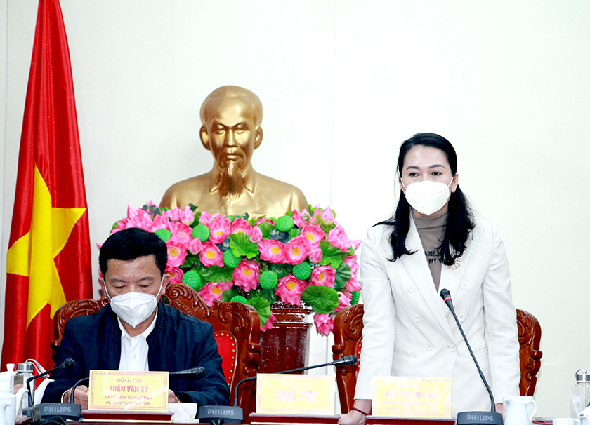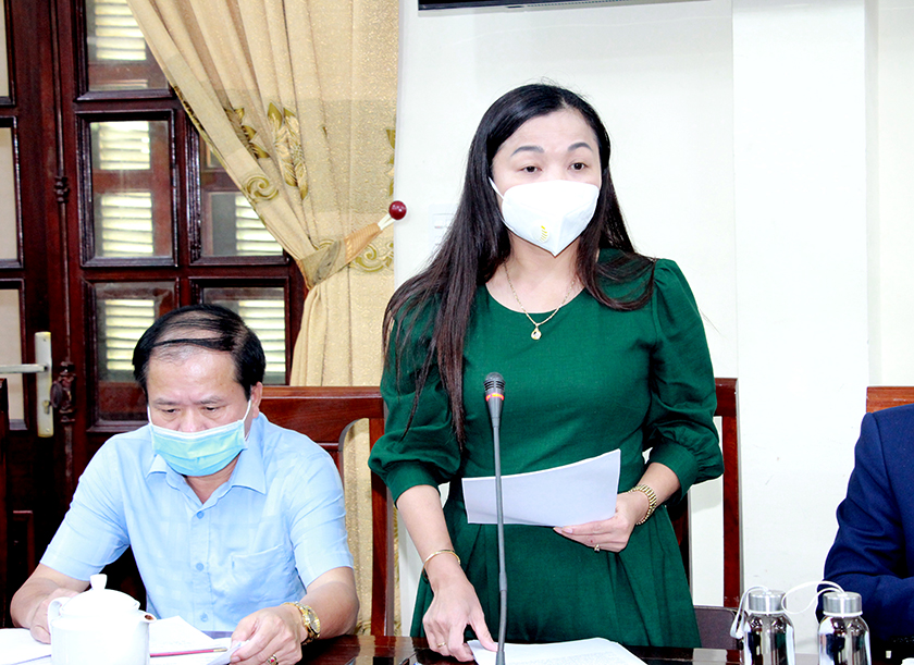 Trưởng ban Văn hóa - Xã hội HĐND tỉnh Đào Thị Anh Nga phát biểu tại cuộc làm việc.